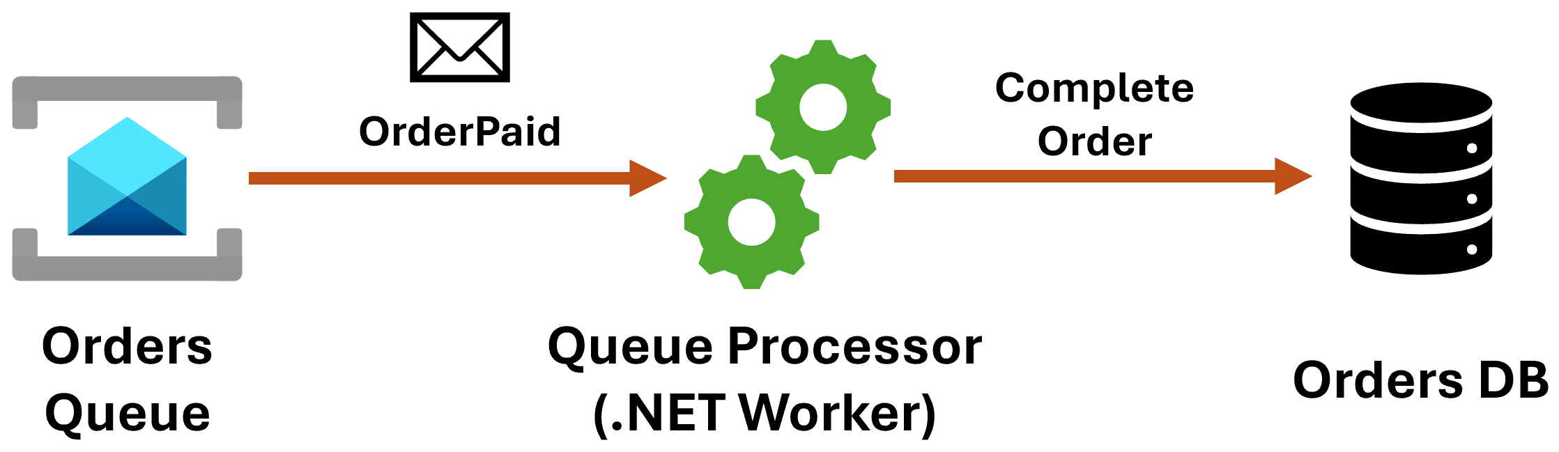 Our application includes a .NET worker responsible for reading OrderPaid messages from our Orders queue, fulfilling the order, and then updating its status to Completed in our database.