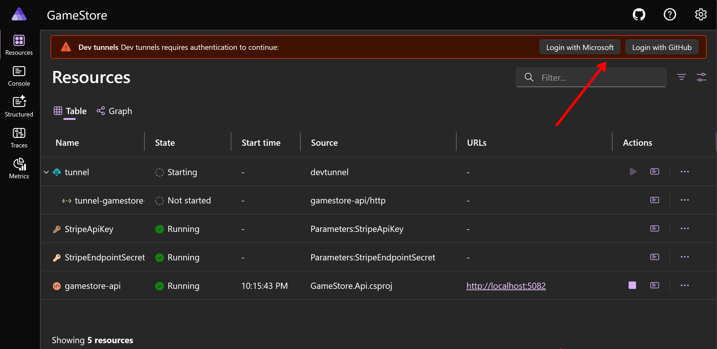Dev tunnels don’t support hosting tunnels anonymously, so you’ll need to log in with your Microsoft or GitHub account.