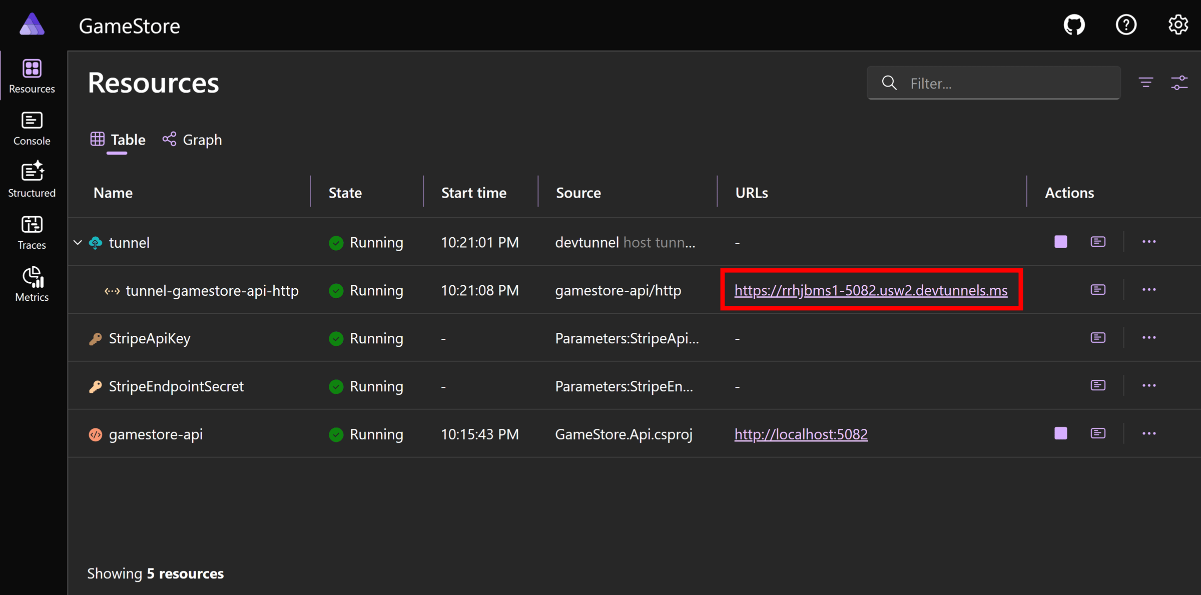After that, your tunnel will be ready, and you can see your tunnel URL right in your Aspire Dashboard:
